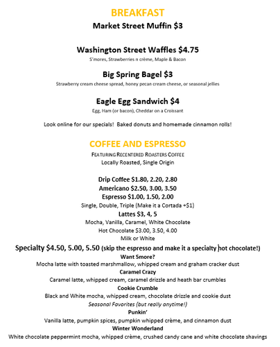 Caramel latte, whipped cream, caramel drizzle, and heath bar crumbles. Hot or iced